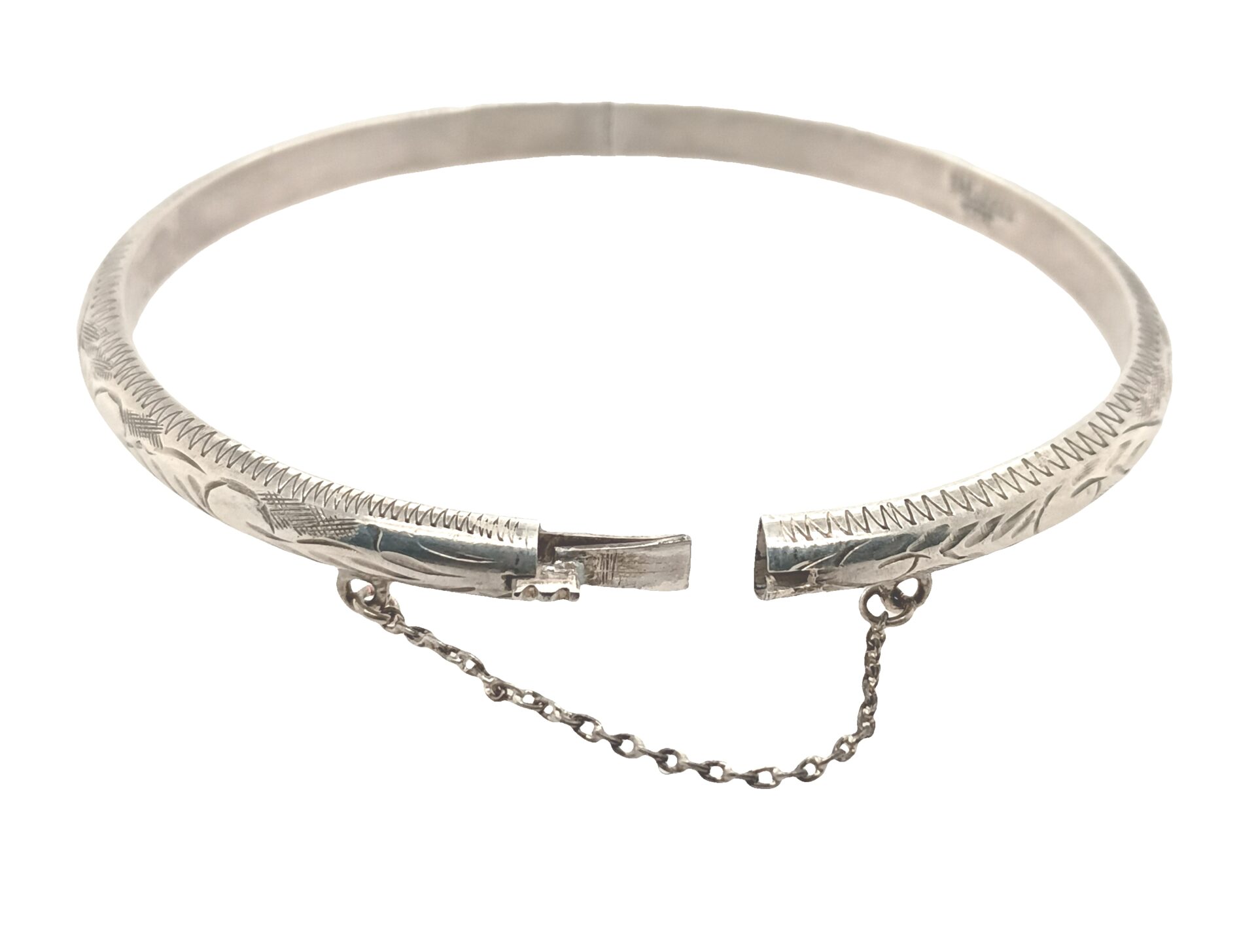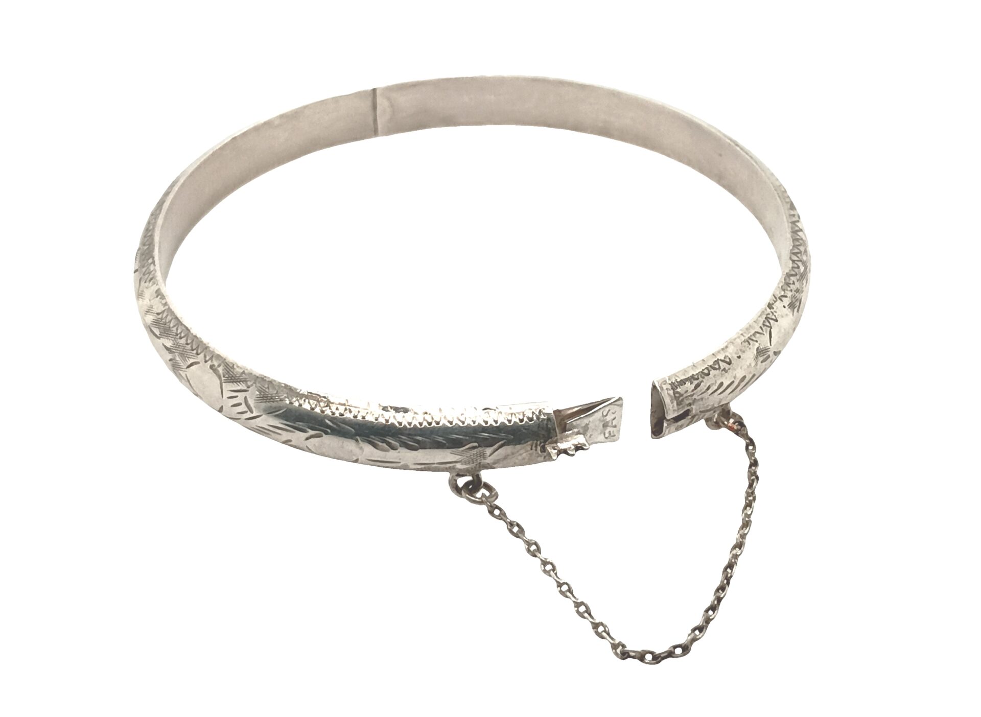 Sterling Silver Vintage Etched Design Hinged Bangle 5mm