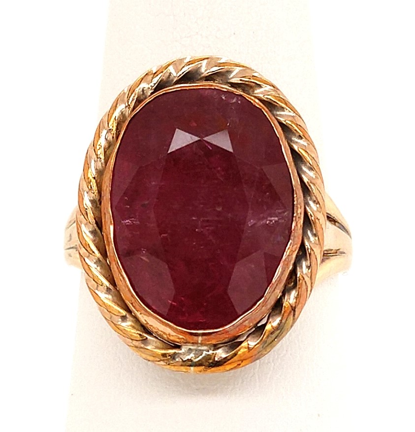 14 Karat Yellow Solitaire Design Ruby Ring With One 13.90X10.50mm Oval Ruby B Grade, Size 5.5