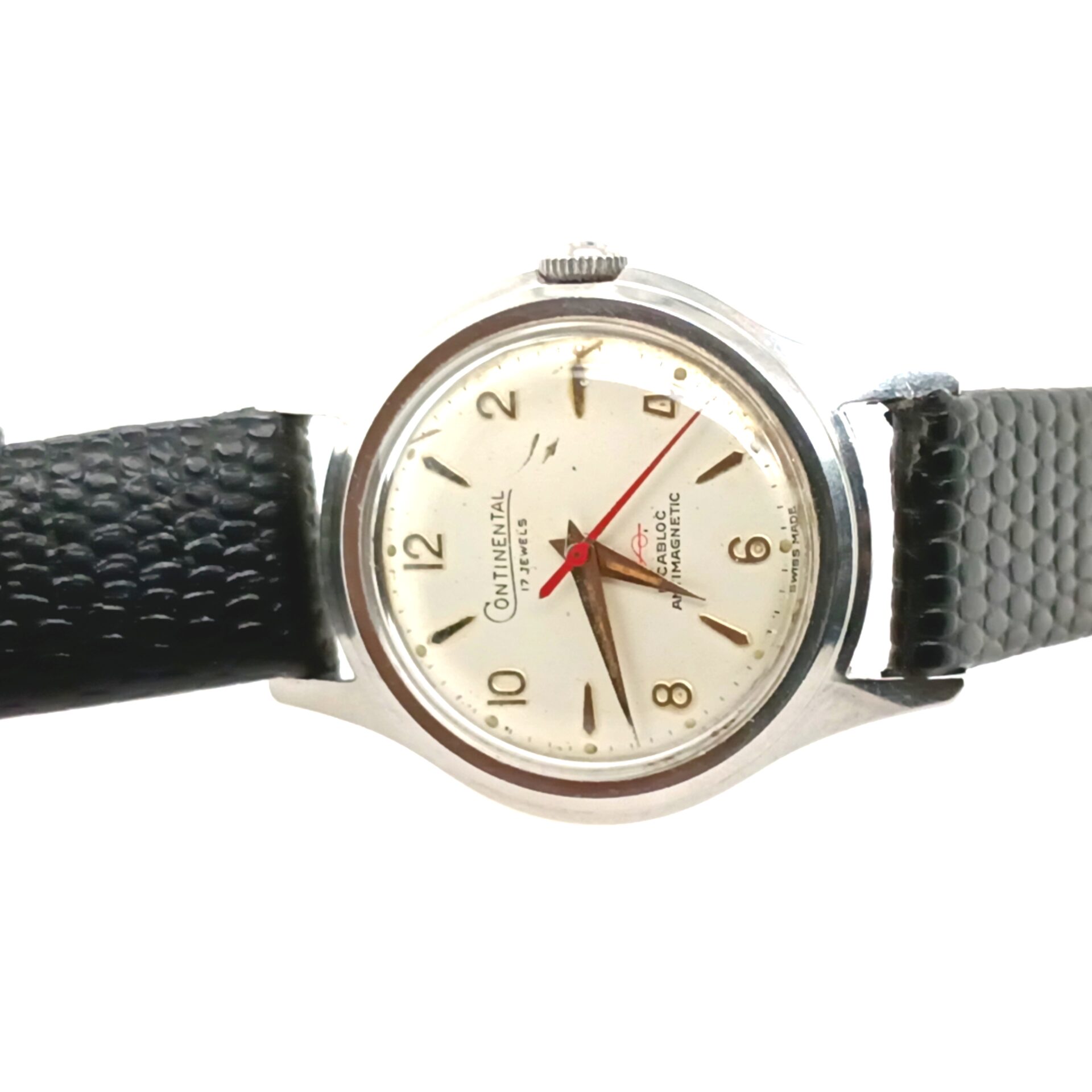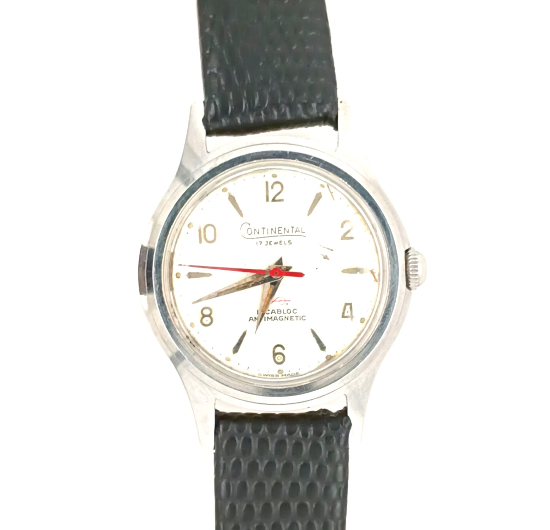 Continental 17 Jewel, AS-1187/94, Water And Shock Resistant, Antimagnetic, Stainless Steel, Recently Serviced, With New Crystal And Black Lizard Grain Genuine Leather Watchband