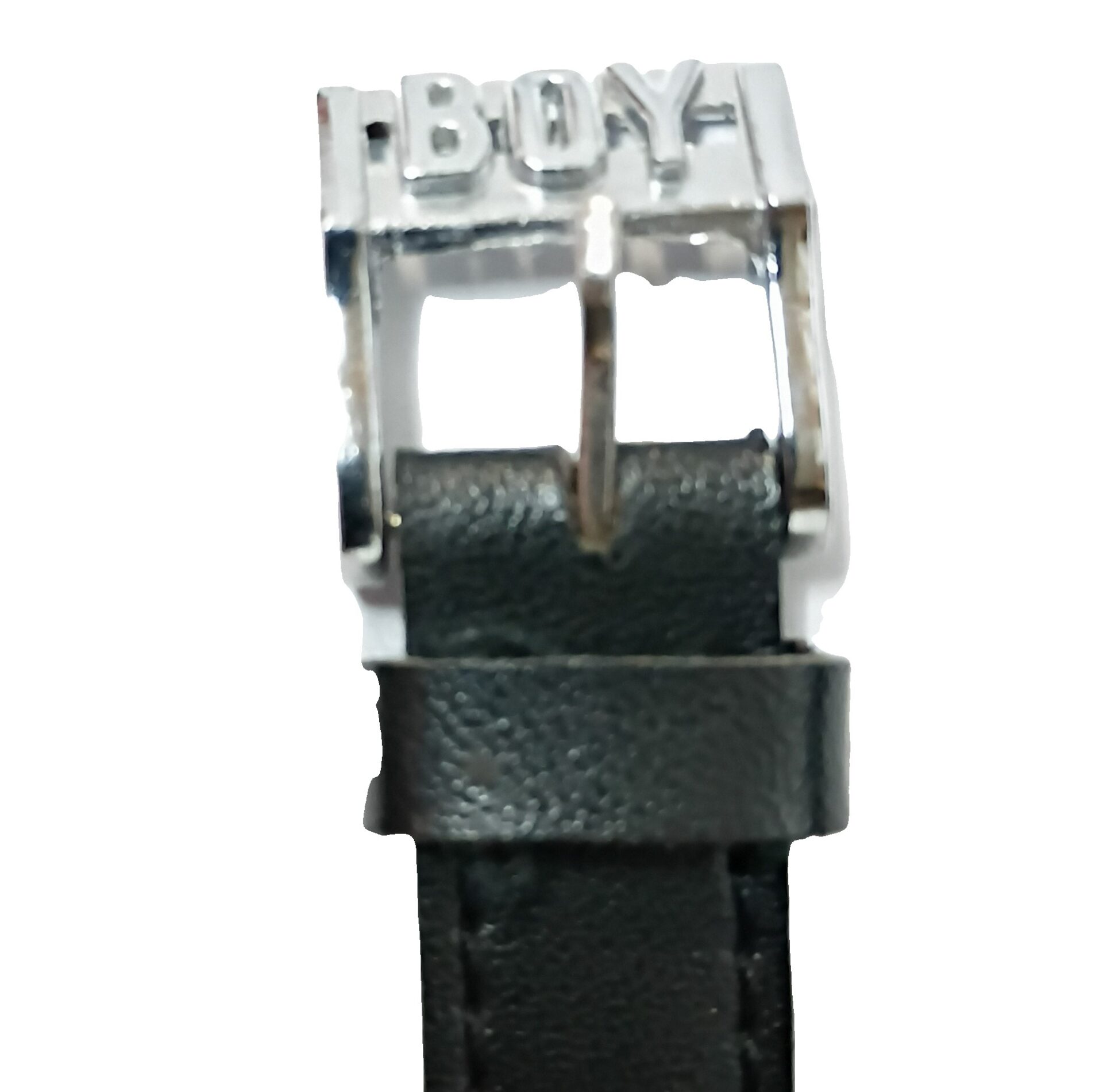 Vintage Boy London Watch, 25mm with Blue and Black Band and Black Dial. Bezel and Buckle are silver tone base metal, case back is stainless steel. Japan movement, water resistant. More suited for smaller wrists, up to 6.5 inches, runs well